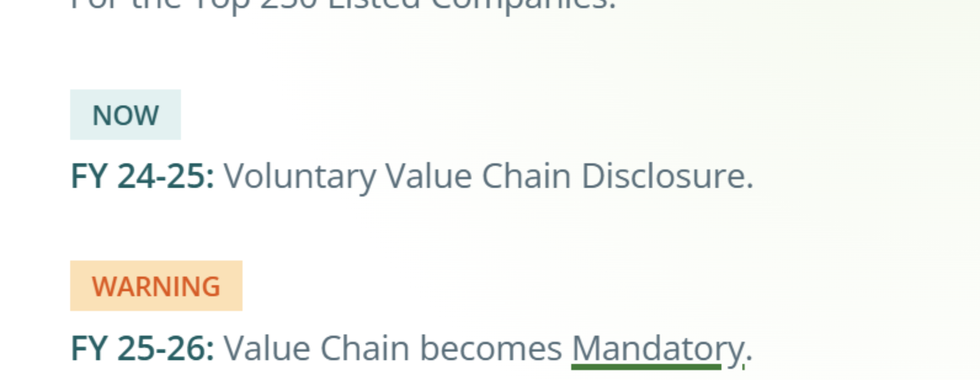 ย โข ๐๐ง๐๐ข๐ ๐๐ข๐ฆ๐๐ฅ๐ข๐ง๐: While currently voluntary, strict "mandatory" assurance for the value chain is set to kick in for the top 250 listed companies in FY 2026-27.